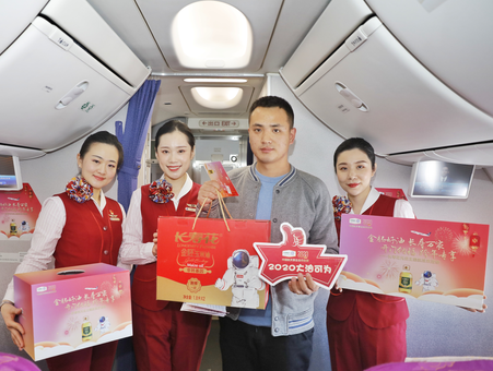 雖然機外的天氣很冷,但新味濃厚的客艙,讓旅客的臉上露出了由衷的興奮與愉悅。不僅如此,本次主題航班還為每位旅客準備了精美山航伴手禮和山航旅客專屬長壽花電子優惠券,把思念與健康送到親人身邊,傳達暖暖團圓意。
